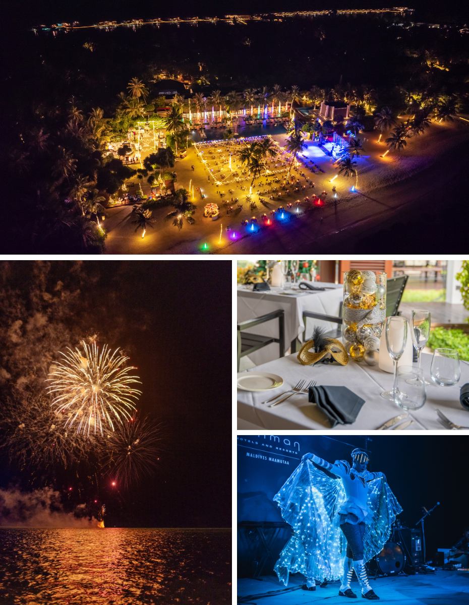 Ring in New Year in Maldives all-inclusive resort style at Pullman Maldives Maamutaa, where the island transforms into a grand circus under the stars. Inspired by The Greatest Showman, this celebration brings fire dancers, gala feasts, and midnight fireworks to our lagoon stage.